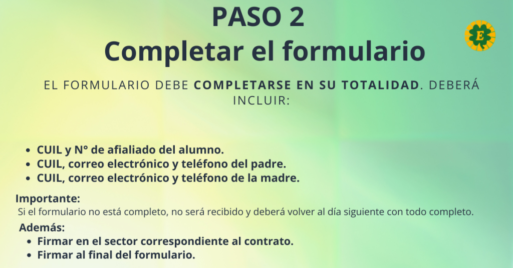 ¿Qué información me van a solicitar? CUIL y n° de afiliado del alumno, CUIL, teléfono y correo electrónico del padre y madre o tutor.