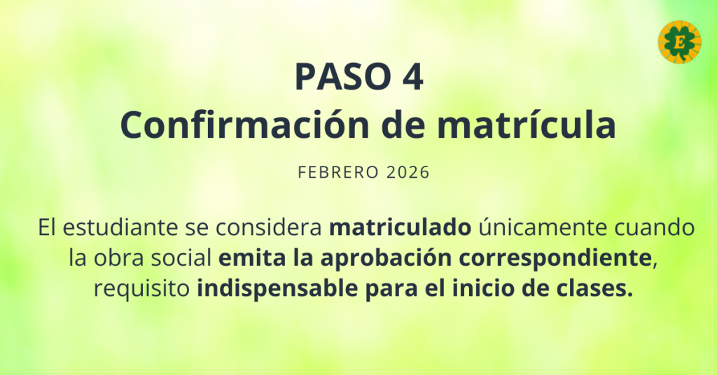 Para que la vacante quede consolidada, debe encontrarse completo y firmado el formulario correspondiente a la RESERVA DE VACANTE y aprobación de la obra social. De no ser así, y vencidos los términos establecidos y comunicados por LA INSTITUCIÓN, la matriculación quedará sin efecto y no se consolidará la vacante del ESTUDIANTE, quedando LA INSTITUCIÓN facultada de pleno derecho a disponer de la misma automáticamente y sin necesidad de comunicación o notificación a EL RESPONSABLE, quedando inhabilitada la concurrencia del ESTUDIANTE a LA INSTITUCIÓN en el ciclo lectivo a comenzar.
